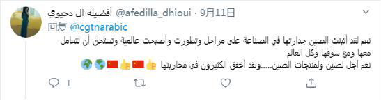 來自摩洛哥的網友費迪拉留言:“中國產品遍布全球,中國已經證明了自己在制造業(yè)中的能力,中國值得我們與她和她龐大的市場打交道。”