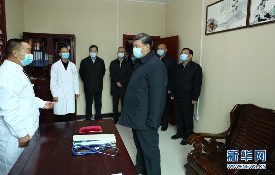 今年2月10日下午,總書記來到北京地壇醫(yī)院,察看新冠肺炎感染者住院診療情況,通過視頻連線武漢市新冠肺炎患者收治醫(yī)院,聽取中央指導(dǎo)組、湖北指揮部有關(guān)情況匯報(bào),慰問奮戰(zhàn)在一線的醫(yī)務(wù)工作者。
