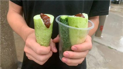 △落坡嶺村民為乘客準(zhǔn)備的黃瓜蘸醬