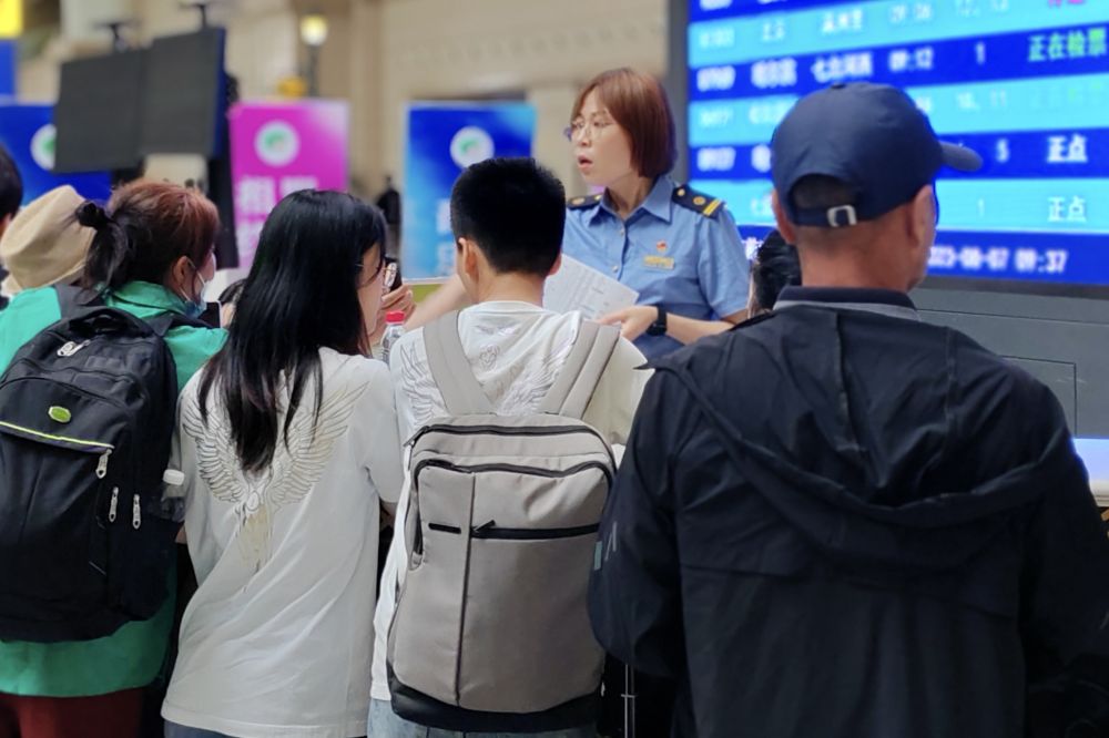 8月7日,乘客在車站咨詢列車開行等信息。(中國鐵路哈爾濱局集團有限公司供圖)