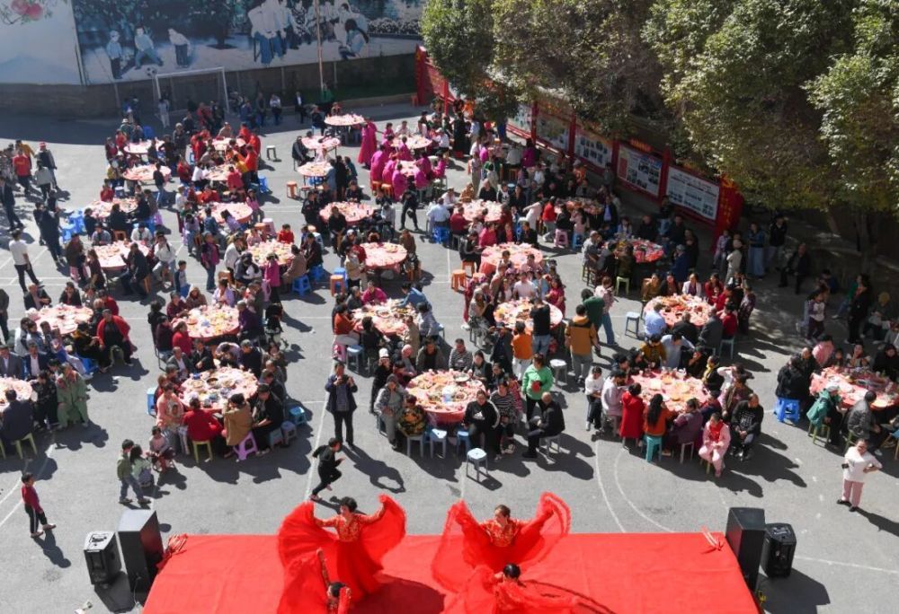 人們?cè)跒豸斈君R市天山區(qū)固原巷社區(qū)舉辦的活動(dòng)中品嘗百家宴,欣賞文藝演出。新華社記者 王菲 攝