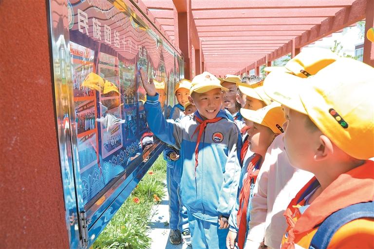 拉薩市墨竹工卡縣南京實(shí)驗(yàn)小學(xué)學(xué)生參觀"民族團(tuán)結(jié)教育主題公園"主題苑。記者 唐斌 通訊員 洛克 攝