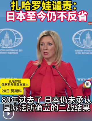 在俄外交部當(dāng)天例行記者會(huì)上,就高市早苗公然發(fā)表涉臺(tái)露骨挑釁言論并在中方表達(dá)嚴(yán)正交涉和強(qiáng)烈抗議后仍執(zhí)迷不悟、拒不撤回一事,扎哈羅娃評(píng)論說(shuō):“日方不僅不反省其近期言論的錯(cuò)誤,而且在80年后的今天仍然拒不承認(rèn)第二次世界大戰(zhàn)的結(jié)果。”