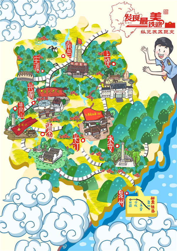 贛閩鐵路紅色環(huán)線示意圖。圖片來源:陸瑤 新中國成立伊始,江西境內(nèi)鐵路幾經(jīng)毀損;福建更是無一條可用鐵路。原蘇區(qū)境內(nèi)峰巒重疊、河流交錯、山路崎嶇,人民群眾出行極為不便。鐵路人整修浙贛、搶建鷹廈,逢山開路、遇水架橋,鷹廈、皖贛、京九、向莆、滬昆、合福、九景衢、昌贛……一條條鐵路建成通車,串聯(lián)起一座座城市。截至2021年3月31日,贛閩兩省總營業(yè)里程8469.2公里。鐵路、高鐵連線成網(wǎng),給地方經(jīng)濟發(fā)展帶來新動能。 1996年9月1日正式通車的京九鐵路,出泰和后兩跨贛江,鉆山越嶺來到興國,為此線路延長了幾十公里。通車時,興國人民扶老攜幼來到興國火車站,迎接駛?cè)敫锩蠀^(qū)的第一列火車,許多老人第一次看到火車,激動得熱淚盈眶,將京九線繞道興國劃出的優(yōu)美弧線,親切地叫作“興國彎”。23年后,昌贛高鐵為繞道興國,劃出了同樣優(yōu)美的弧線。兩道“興國彎”,初心永不變。高鐵時代的到來,人流、物流、資金流、信息流的快速流動,為興國產(chǎn)業(yè)發(fā)展帶來新的契機。 往來馳騁的高鐵動車,串聯(lián)起贛南閩西紅色旅游、客家旅游和生態(tài)旅游。為講好蘇區(qū)革命史,南鐵深入挖掘贛閩兩省紅色文化和優(yōu)質(zhì)旅游資源,利用路網(wǎng)優(yōu)勢和專列運行優(yōu)勢,在全國鐵路范圍內(nèi)集中推介“贛閩”紅色旅游資源及旅游產(chǎn)品,使其成為國內(nèi)旅游的新熱點,年內(nèi)蘇區(qū)旅游專列將開行百趟以上。除旅游專列外,南昌至贛州、興國、瑞金、井岡山、韶山之間動車也實現(xiàn)了早、中、晚全覆蓋,可實現(xiàn)當日或次日快速往返。 京九、贛瑞龍、南龍鐵路及昌贛、合福、滬昆高鐵翻山越嶺,聯(lián)通閩山贛水,縮短了周邊地區(qū)與贛閩蘇區(qū)城市間的時空距離。依托鐵路網(wǎng)絡(luò),贛州臍橙、贛南蜜橘、龍巖花生以及沿線的土特產(chǎn)和其他產(chǎn)品,借助火車運往全國;贛州國際陸港擴寬對接“海上絲綢之路”的開行線路,融入國家“一帶一路”倡議,開通19條中歐(亞)班列線路,成為全國鐵海聯(lián)運外貿(mào)集裝箱吞吐量最大的內(nèi)陸港。 縱覽贛閩蘇區(qū)美景,一路高歌一路前行。跌宕百年櫛風沐雨,鐵路助力蘇區(qū)振興。2021年,贛深高鐵、興泉鐵路興國至寧化段、浦梅鐵路建寧至冠豸山段將先后開通運營,鐵路承載蘇區(qū)人民逐夢未來的信心,奏響經(jīng)濟社會發(fā)展的汽笛,奔馳在通往幸福生活的道路上。 |