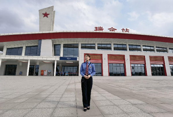 圖片來源:中國鐵路南昌局集團有限公司 瑞金車站售票員王瑜,利用休息時間在車站當起兼職紅色講解員?!按蠹沂紫瓤吹降谋闶侨鸾鸹疖囌菊厩皬V場主題雕塑,雕塑參考當年蘇維埃共和國黨、政、軍、群領導人當年留影照片,從東至西依次是劉少奇、項英、周恩來、毛澤東、朱德、張聞天、博古……”每當有團體旅客來到車站,希望了解浮雕故事時,王瑜都會在引導他們進站乘車的同時娓娓道來,一個個黨史故事。