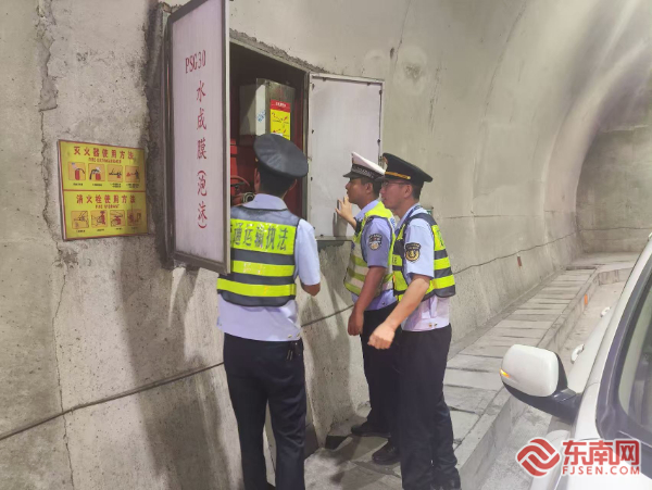 對隧道消防設(shè)施進(jìn)行檢查。寧德高速執(zhí)法支隊供圖