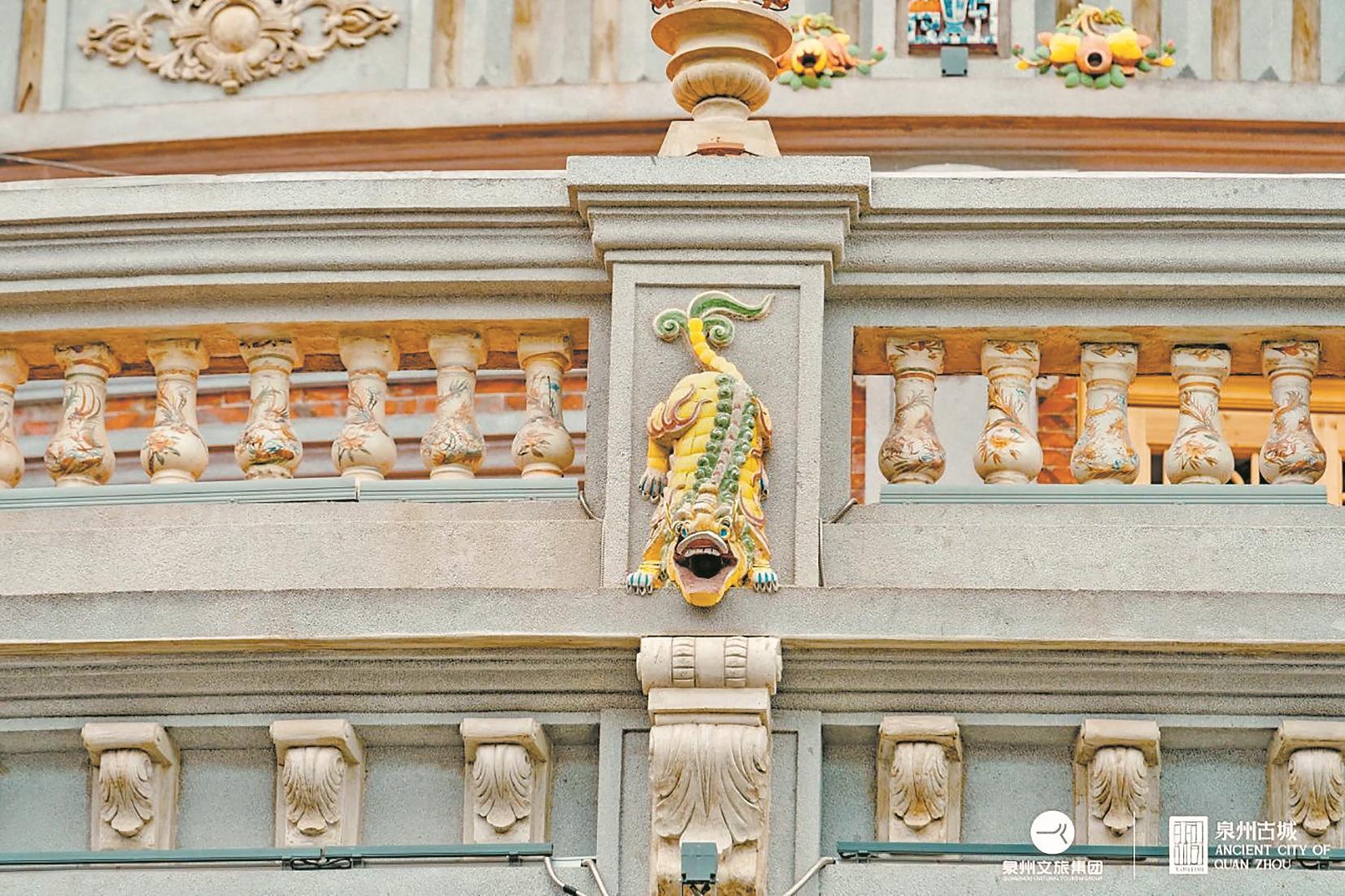 泉州人對(duì)生活的美好祈愿,醞釀出了豐富多彩的建筑表達(dá),而這一點(diǎn)也反應(yīng)在中山路灰塑的創(chuàng)作上。如麒麟、喜鵲、大象、獅子、飛馬、鳳凰、蝙蝠、松鶴、鯉魚(yú)、龍等,這些瑞獸祥圖寄托了人們對(duì)美好生活愿望。 灰塑包含畫(huà)與批兩類。畫(huà)稱為彩描,批稱為灰批。灰塑質(zhì)地潔白,以傳統(tǒng)建筑中的灰泥為主要材料。灰泥由蠔殼灰(或石灰)、麻絲、煮熟的海帶,有時(shí)加入糯米漿、紅糖水,攪拌捶搗而成,增加其黏性。老祖宗用它造就了千百年的建筑藝術(shù)。