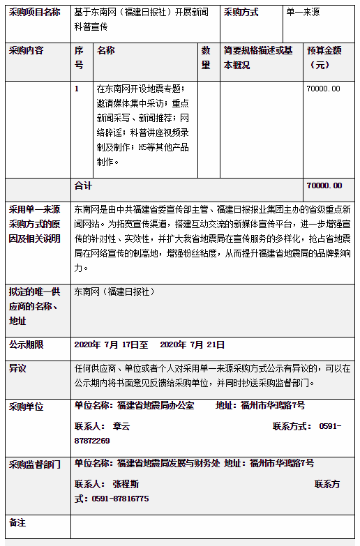基于東南網(wǎng)(福建日?qǐng)?bào)社)開(kāi)展新聞科普宣傳采用單一來(lái)源采購(gòu)公示