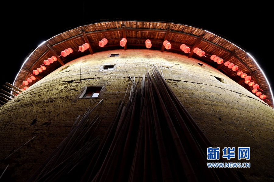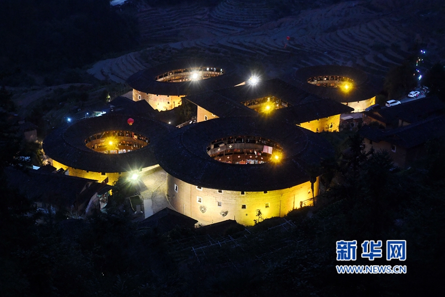 這是南靖縣梅林鎮(zhèn)坎下村的翠美樓夜景圖。新華社記者林善傳攝 福建土樓依山就勢(shì),布局合理,吸收了中國(guó)傳統(tǒng)建筑規(guī)劃的“風(fēng)水”理念,適應(yīng)聚族而居的生活和防御的要求,巧妙地利用了山間狹小的平地和當(dāng)?shù)氐纳痢⒛静?、鵝卵石等建筑材料,是一種自成體系,具有節(jié)約、堅(jiān)固、防御性強(qiáng)特點(diǎn),又極富美感的生土高層建筑類(lèi)型。