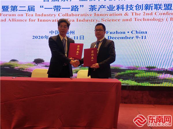 開幕式現(xiàn)場(chǎng) 福建農(nóng)林大學(xué)校長(zhǎng)蘭思仁致辭 東南網(wǎng)記者張立慶 攝 東南網(wǎng)12月10日訊(本網(wǎng)記者 張立慶)2020年12月9日至12月11日,為了進(jìn)一步推動(dòng)茶產(chǎn)業(yè)協(xié)同創(chuàng)新、加強(qiáng)21世紀(jì)海上絲綢之路核心區(qū)建設(shè)和茶產(chǎn)業(yè)高質(zhì)量發(fā)展,共謀“十四五”茶產(chǎn)業(yè)高質(zhì)量發(fā)展新思路,12月9日至12月11日,首屆茶產(chǎn)業(yè)協(xié)同創(chuàng)新論壇暨第二屆“一帶一路”茶產(chǎn)業(yè)科技創(chuàng)新聯(lián)盟大會(huì)在福建省福州市召開,會(huì)議由協(xié)同創(chuàng)新院茶產(chǎn)業(yè)分院、“一帶一路”茶產(chǎn)業(yè)科技創(chuàng)新聯(lián)盟、福建省茶產(chǎn)業(yè)技術(shù)創(chuàng)新聯(lián)盟主辦,福建農(nóng)林大學(xué)園藝學(xué)院、福建省農(nóng)業(yè)科學(xué)院茶葉研究所、福建省種植業(yè)技術(shù)推廣總站承辦。 本次會(huì)議主題圍繞在“一帶一路”茶產(chǎn)業(yè)交流合作、茶產(chǎn)業(yè)協(xié)同創(chuàng)新、茶產(chǎn)業(yè)高質(zhì)量發(fā)展等關(guān)鍵詞。參會(huì)人員為“一帶一路”茶產(chǎn)業(yè)科技創(chuàng)新聯(lián)盟理事單位代表、協(xié)同創(chuàng)新院茶產(chǎn)業(yè)分院入駐企業(yè)代表、福建省茶產(chǎn)業(yè)科技創(chuàng)新聯(lián)盟理事代表、相關(guān)行業(yè)領(lǐng)導(dǎo)、專家和學(xué)者等。 會(huì)議由福建農(nóng)林大學(xué)鄭寶東副校長(zhǎng)主持,福建農(nóng)林大學(xué)蘭思仁校長(zhǎng)致開幕詞,福建省十一屆政協(xié)副主席、海峽兩岸茶業(yè)交流協(xié)會(huì)會(huì)長(zhǎng)陳紹軍致歡迎辭,福建省農(nóng)業(yè)科學(xué)院院長(zhǎng)翁啟勇致歡迎辭發(fā)言。會(huì)議首先由協(xié)同創(chuàng)新院茶產(chǎn)業(yè)分院執(zhí)行院長(zhǎng)郭玉瓊作協(xié)同創(chuàng)新院茶產(chǎn)業(yè)分院工作報(bào)告,并舉行了協(xié)同創(chuàng)新院茶產(chǎn)業(yè)分院戰(zhàn)略合作單位簽約與入駐企業(yè)授牌儀式。