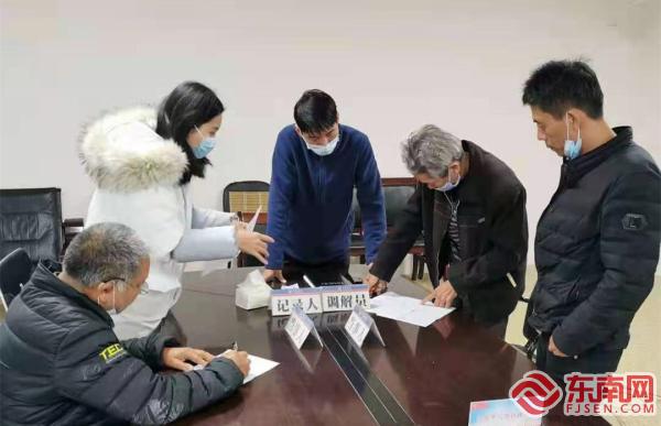 當(dāng)事人簽署協(xié)議書(常太司法所 供圖) 東南網(wǎng)莆田3月11日訊(本網(wǎng)記者 李劍軍)劍拔弩張的相鄰,因他握手言和;反目成仇的朋友,因他和好如初……他是莆田市城廂區(qū)常太司法所的一名調(diào)解員卓金飛。6年多來,卓金飛共參與各類矛盾糾紛調(diào)解100余起,其中疑難復(fù)雜案件10余起,調(diào)解成功率達(dá)99%。 2013年9月,卓金飛從部隊(duì)轉(zhuǎn)業(yè)到城廂區(qū)司法局常太司法所從事人民調(diào)解工作,從未系統(tǒng)學(xué)習(xí)過法律知識(shí)的他深感工作十分吃力。為做好司法調(diào)解工作,成為一名合格的基層人民調(diào)解員,他自費(fèi)去進(jìn)修心理學(xué)專業(yè)知識(shí),利用休息時(shí)間購(gòu)買閱讀法律書籍,補(bǔ)充法律知識(shí)。正因?yàn)橛辛俗銐虻闹R(shí)儲(chǔ)備,讓他在處理日常的糾紛時(shí),更加地得心應(yīng)手。 2020年11月,吳某國(guó)和吳某明本是一對(duì)要好的兄弟,因弟弟吳某明私自將兩家共有的土地與鄰居置換,便產(chǎn)生了本不該發(fā)生的糾紛?!爸脫Q的土地里面,部分所有權(quán)應(yīng)是屬于我們的,在置換前卻沒有和我們有任何表示。”吳某國(guó)的妻子對(duì)此產(chǎn)生了質(zhì)疑。在了解情況后,卓金飛馬上介入調(diào)解,避免事態(tài)進(jìn)一步擴(kuò)大。 “兩家其實(shí)本沒有什么隔閡糾紛,主要是事先沒有做好溝通?!弊拷痫w告訴東南網(wǎng)記者,在經(jīng)過多次多方協(xié)商后,對(duì)幾家的土地財(cái)產(chǎn)進(jìn)行合理分配,得到當(dāng)事人的一致同意,并達(dá)成了共同協(xié)議。“看到他們和好如初,我們也感到十分欣慰?!弊拷痫w露出了燦爛的笑容。