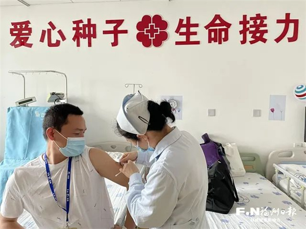 △葉釗斌注射第一針動(dòng)員劑。(省紅會(huì)供圖) 葉釗斌,寧德市壽寧縣人。葉釗斌的二胎寶寶在出生時(shí)就被查出患有先天性食道閉鎖,就在幾天前還因術(shù)后不良反應(yīng)經(jīng)歷過搶救,正因?yàn)檫@樣,他更能感受到生命的可貴。