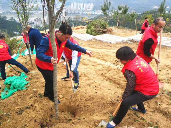 梅埔村位于梅溪鎮(zhèn)東北部,有“中國橄欖第一村”美稱。來到植樹點(diǎn),漫山遍野的橄欖樹吐露新枝,到處是春意盎然、欣欣向榮的景象。志愿者們熱情高漲,一到現(xiàn)場(chǎng),就迫不及待地干起活來。大家分工明確,揮鍬、挖坑、搬樹、扶苗、鏟土、填坑、整壟、澆水,相互合作,配合默契,個(gè)個(gè)干勁十足。經(jīng)過1個(gè)多小時(shí)的辛勤勞動(dòng),幾十株新栽種的山櫻花、山茶花、石榴樹迎風(fēng)而立在山頭,煥發(fā)出勃勃生機(jī)。 活動(dòng)結(jié)束后,志愿者們紛紛表示,參加這次
