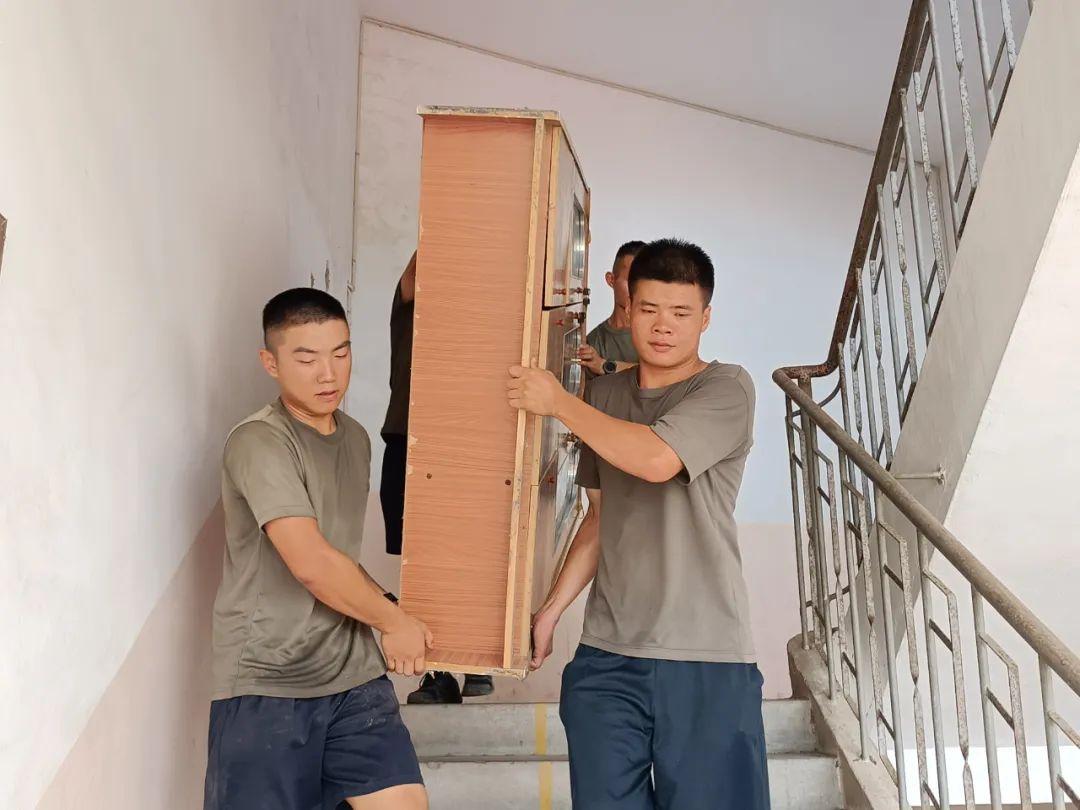 8月17日上午,該駐訓部隊便早早地安排運輸車輛和“精兵強將”來到搬運地點待命。在搬遷現場,需要搬運的物資有課桌椅、貨架、柜子、圖書、實驗儀器、日常辦公用品等30000余套(本),不僅種類豐富,而且數量繁多。面對精而細的搬遷量,部隊官兵們在學校搬遷領導小組的指引下,通過肩扛、手抬等方法,將一套套辦公桌椅、儲物鐵柜、滅火器箱、實驗儀器箱等物品依次裝車運往新校區(qū)。 “小心桌角別磕到墻壁!”“前面過樓梯轉角的時候注意一下!”“搬的時候輕一點……”戰(zhàn)士們對所有物品都輕搬輕放,從高樓層搬運到地面,再運送上車;車輛途經3公里的路程,到達邊城中學新校區(qū),戰(zhàn)士們又小心翼翼地卸貨,搬運到學校指定位置。 炎炎烈日下,官兵們大汗淋漓,但沒有一句怨言,只是默默穿梭于各樓層間,偶爾停下來擦擦額頭的汗水,也不顧汗流浹背,繼續(xù)來回搬運。 “戰(zhàn)士們,先來吃點早餐吧!”詔安縣邊城中學工作人員為部隊官兵們送來了早餐?!爸x謝,這邊還有一點物資,我們搬完了再吃吧!”就這樣,在完成階段性搬運工作后,戰(zhàn)士們進行了短暫的休息,又繼續(xù)投入到搬運工作中。 經過一天的努力,學校需搬運的物資均已運送到新校區(qū)指定的位置?!敖裉於嗵澚私夥跑姽俦?,你們辛苦了,謝謝你們的辛勤付出!”沈校長向該部隊領導表示衷心的感謝,并表示今后部隊如果有什么訓練、生活上的需求,學校一定全力支持配合,希望軍地雙方同呼吸,共命運,共同續(xù)寫軍民魚水深情。 |