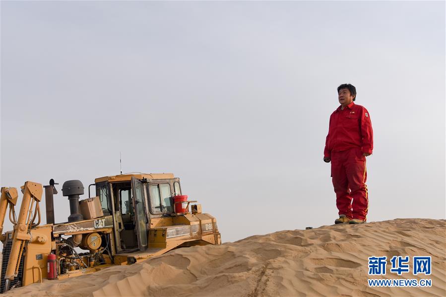 在塔克拉瑪干沙漠腹地,東方物探塔里木物探處2113隊的推土機手胡軍爬上大沙包觀察前方沙漠情況(1月13日攝)。新華社記者 丁磊 攝 新華社烏魯木齊2月3日電(記者顧煜、宿傳義)“今天一定要把這片沙漠路推出來?!碧爝€未完全放亮,一陣發(fā)動機的轟鳴已喚醒沉寂的塔克拉瑪干大沙漠腹地。為“伙伴”推土機做完體檢后,胡軍擦了擦手上的黑油,開始在連綿的沙丘中顛簸…… 今年47歲的胡軍是東方物探塔里木物探處2113隊的一名推土機手,2019年10月,塔里木油田中古14-21三維、塔中2三維物探項目開工,胡軍再次進入塔克拉瑪干沙漠腹地。 作為沙漠里尋找油氣的第一道工序,胡軍和工友們每天要開著推土機,在“死亡之?!彼死敻纱笊衬沟赝坡贰?000多平方公里的施工面積,起伏不定的沙丘,沙丘最大落差超過80米……“沙包太大,不推路,后續(xù)班組無法工作。” |