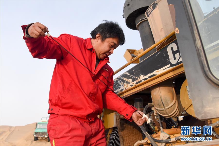 在塔克拉瑪干沙漠腹地,東方物探塔里木物探處2113隊的推土機手胡軍在查看推土機機油情況(1月13日攝)。新華社記者 丁磊 攝 為了趕工期,今年春節(jié)胡軍和工友們滿打滿算休息了一天。由于信號不穩(wěn)定,打電話給家里,胡軍天天都要跑幾個沙丘。 離家?guī)浊Ч?,與車相伴,默默推路。不過在他心中,自己的這點辛苦不算什么,“只要為國家做貢獻,能為國家找到石油,都值了!”