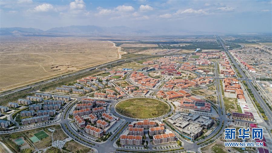 這是2019年9月3日拍攝的寧夏銀川市永寧縣閩寧鎮(zhèn)新鎮(zhèn)建設(shè)全景(無人機(jī)照片)。 新華社記者 王鵬 攝