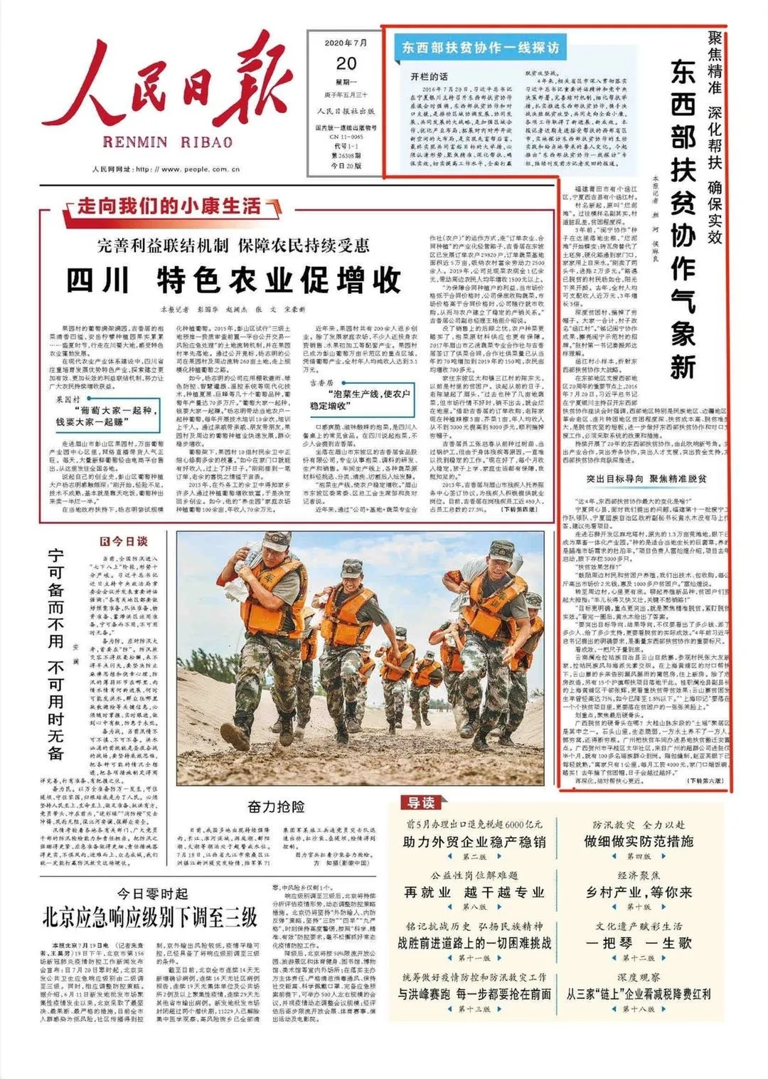 2020-07-20 11:58:48 來源:7月20日人民日報 責任編輯:陳瑋 作者:顏珂 侯琳良7月20日人民日報頭版刊登報道《東西部扶貧協(xié)作氣象新》,點贊閩寧協(xié)作有實效。