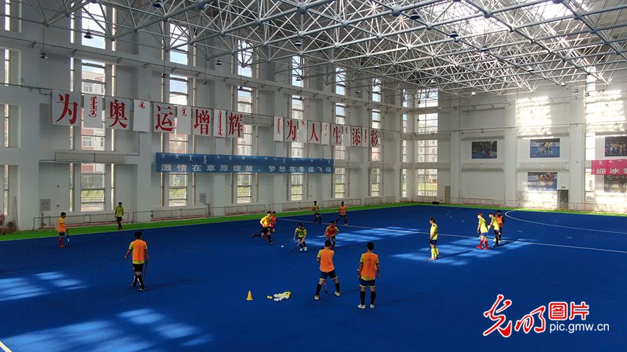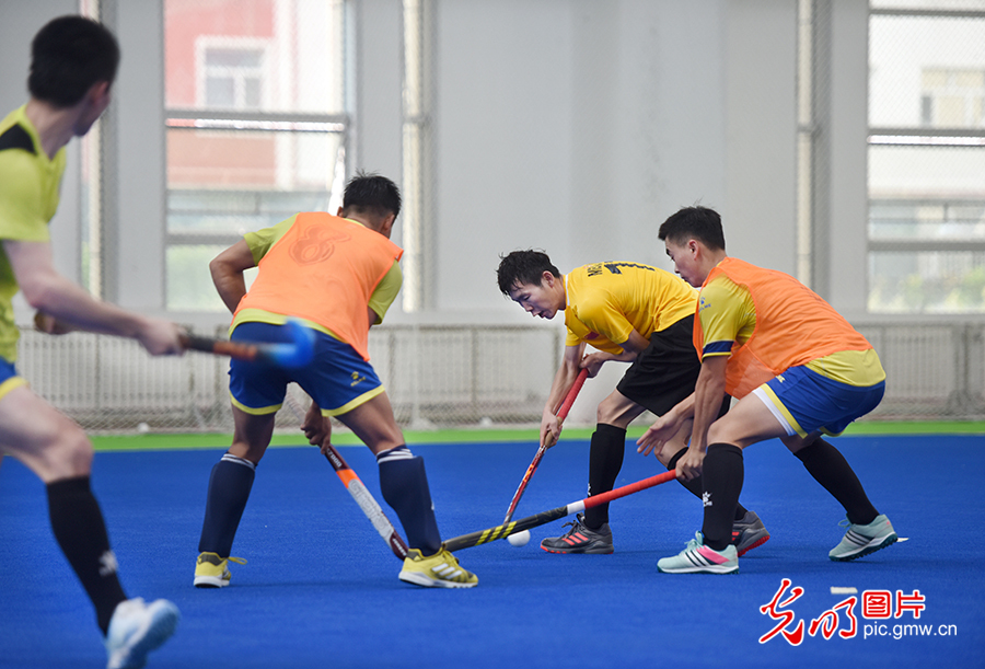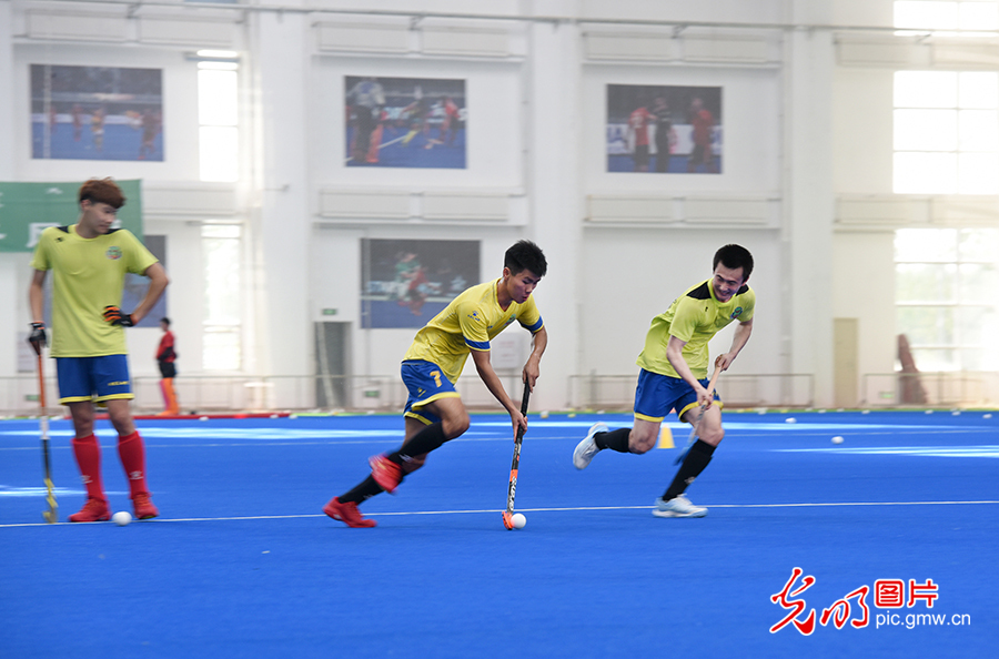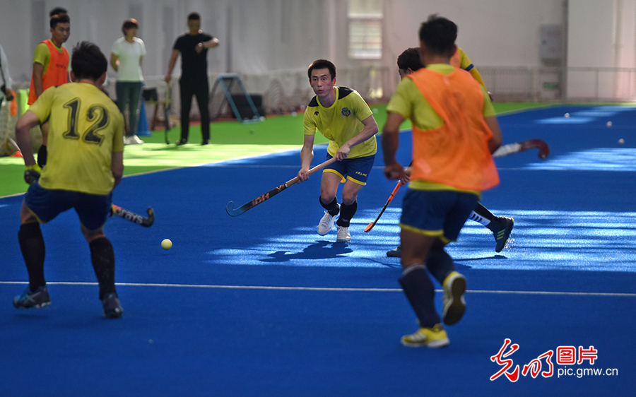 為填補(bǔ)新中國競技體育項(xiàng)目空白,1976年,中國第一支男子曲棍球隊(duì)在莫旗組建。1978年,以莫旗籍教練和運(yùn)動(dòng)員為主組建了第一支中國男子曲棍球隊(duì),開始一系列出國訪問和比賽交流活動(dòng)。圖為2020年8月4日,莫旗曲棍球隊(duì)在莫旗曲棍球訓(xùn)練基地訓(xùn)練。(潘迪攝/光明圖片)