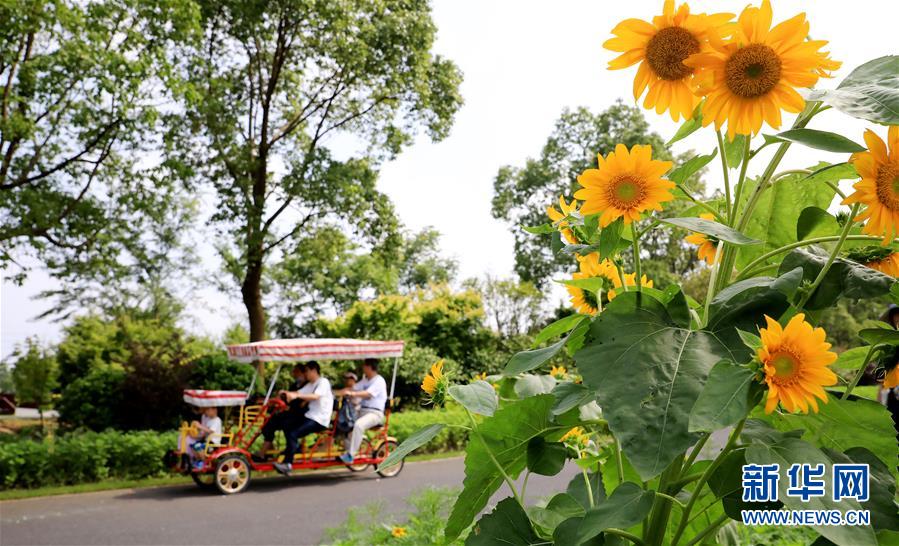 游客在上海市金山區(qū)的花開(kāi)海上生態(tài)園游玩(6月26日攝)。新華社記者 方喆 攝