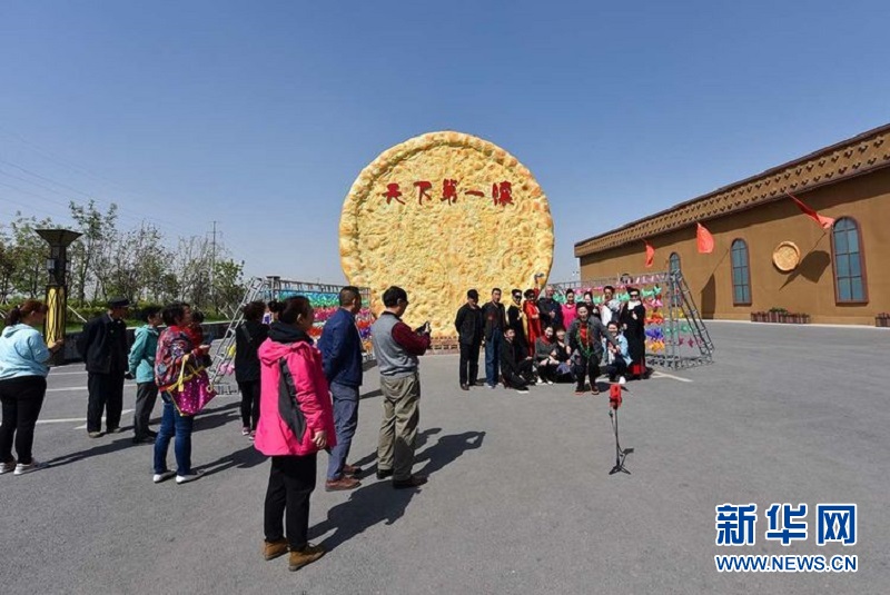 游客在烏魯木齊市馕文化產(chǎn)業(yè)園內(nèi)合影留念。 能歌善舞的新疆人民以馕為主題創(chuàng)作出絢爛的藝術(shù)作品,在各地馕文化節(jié)中表演。如今,馕已經(jīng)超過(guò)純粹飲食意義,更像新疆民俗符號(hào),化身新疆名片。