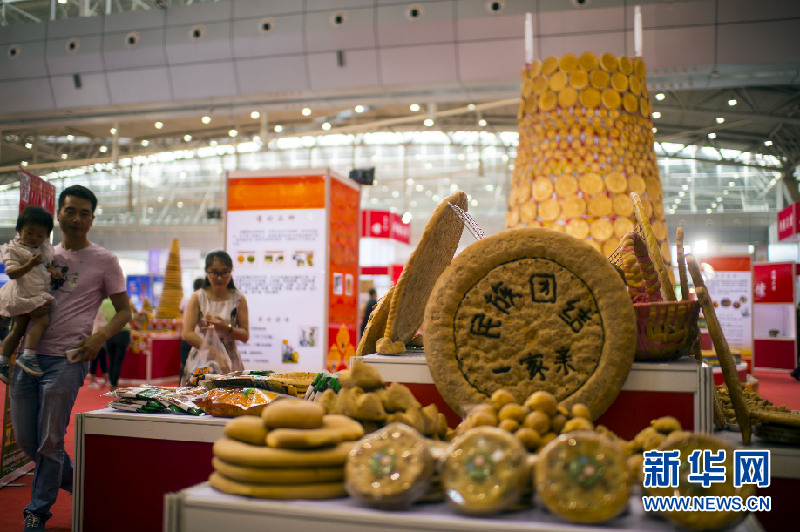 在一場(chǎng)馕文化節(jié)中,游客駐足欣賞包含馕元素的中國(guó)結(jié)。李飛 攝 “以前新疆男人出行,女人會(huì)提前一天和面打馕,馕就是樸實(shí)的愛情。”烏魯木齊市馕文化產(chǎn)業(yè)園講解員曼子熱·蘇比向游客講解著馕的歷史、傳統(tǒng)與現(xiàn)代變革。她說(shuō)很多游客告訴她,看到馕就想到新疆。 “其實(shí)馕確實(shí)像新疆人,樸實(shí)、堅(jiān)韌、純樸?!甭訜帷ぬK比說(shuō)。 |