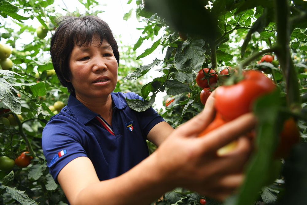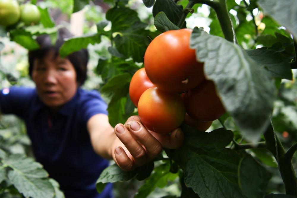 8月11日,在甘肅省臨夏回族自治州臨夏縣先鋒鄉(xiāng)前韓村,搬遷戶韓貴蘭在日光溫室內(nèi)采摘西紅柿。 近年來,甘肅省臨夏回族自治州臨夏縣把易地扶貧搬遷作為打贏脫貧攻堅戰(zhàn)的重要任務(wù),科學(xué)推進易地扶貧搬遷和脫貧攻堅工作。為了讓搬遷群眾能夠安居樂業(yè),當(dāng)?shù)卣⒅胤龀趾罄m(xù)產(chǎn)業(yè)發(fā)展,引導(dǎo)搬遷群眾發(fā)展日光溫室、布鞋加工、觀光農(nóng)業(yè)、特色種養(yǎng)殖等產(chǎn)業(yè),幫助搬遷群眾實現(xiàn)就近就業(yè)、拓寬增收渠道,確保搬遷群眾“搬得出、穩(wěn)得住、有事做、能致富”。新華社記者 陳斌 攝