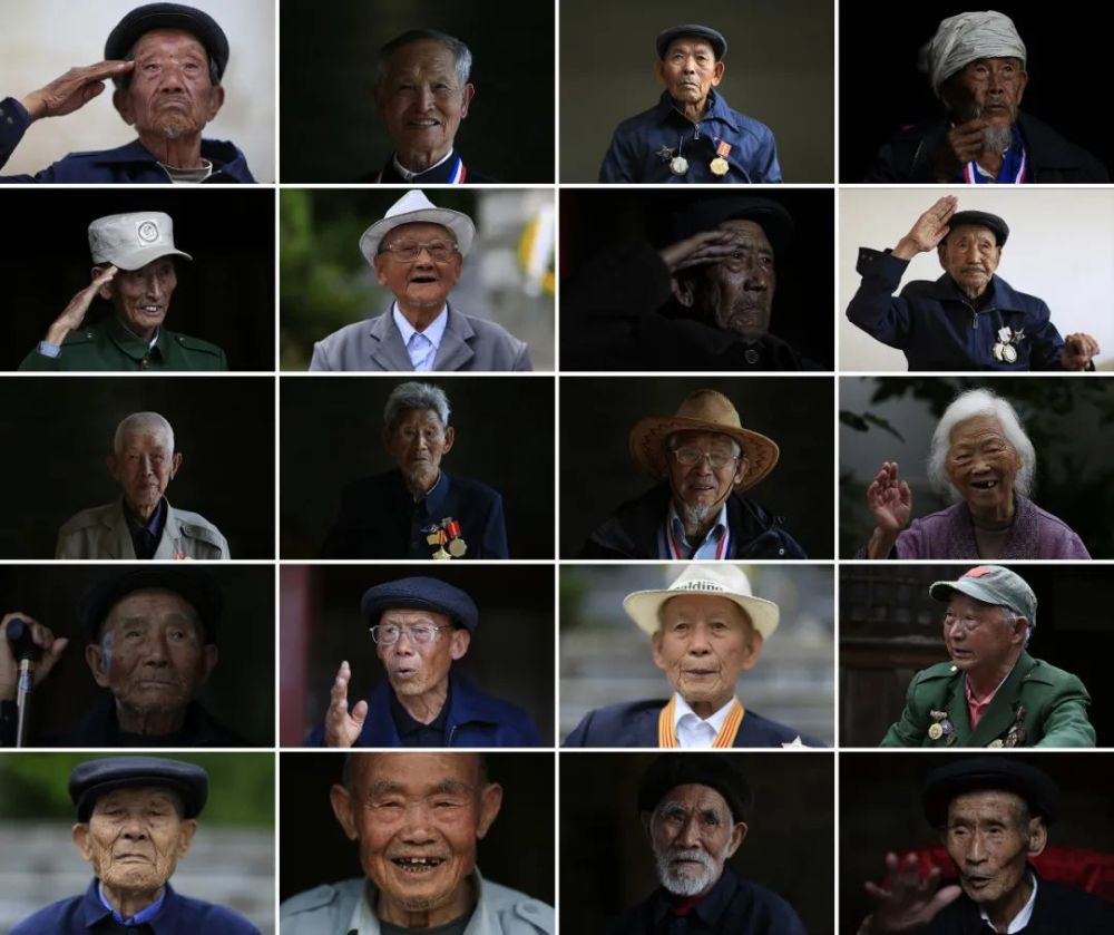 20位中國遠(yuǎn)征軍滇西抗戰(zhàn)老兵的拼版圖片。新華社發(fā)(田衛(wèi)濤 攝) 英雄受人敬仰 奮斗自有來人