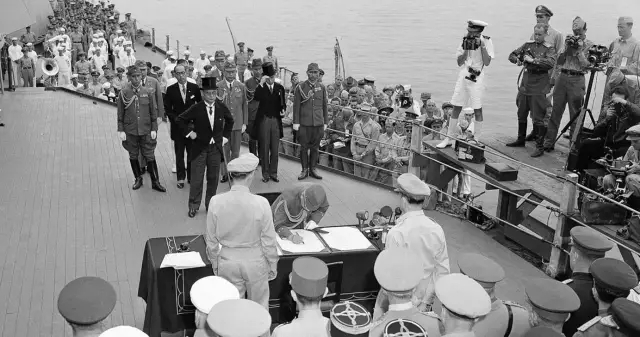 75年前,1945年9月2日 日本代表登上美軍“密蘇里號(hào)”軍艦 簽署了投降書(shū) 中、美、英、蘇等9國(guó)代表相繼簽字 接受日本投降 至此,中國(guó)人民抗日戰(zhàn)爭(zhēng)勝利結(jié)束 世界反法西斯戰(zhàn)爭(zhēng)也落下帷幕