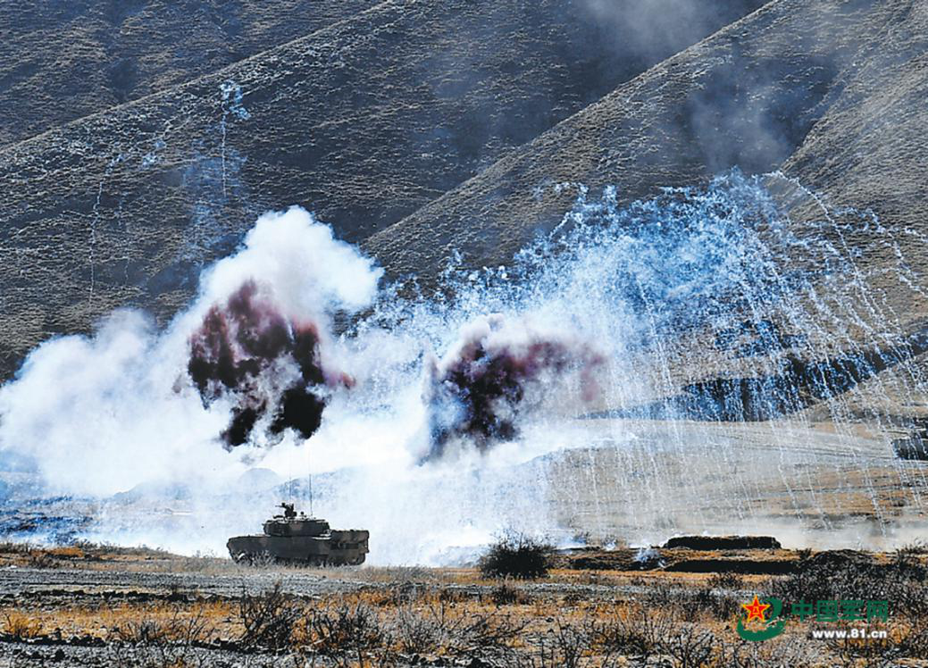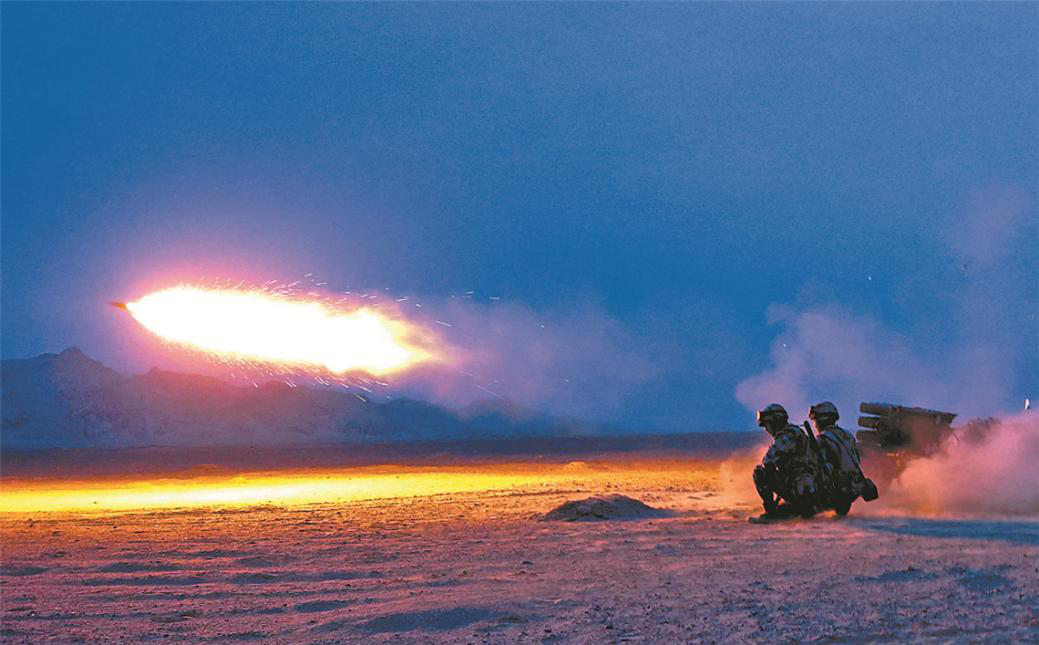 新疆軍區(qū)某火力團(tuán)實(shí)彈射擊演練。