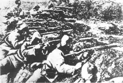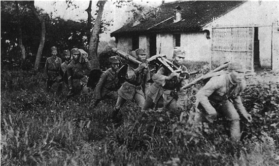 東北抗日聯(lián)軍戰(zhàn)士在伏擊敵人。(資料圖) 幾無(wú)任何自然屏障的淞滬平原 面對(duì)日軍主力在戰(zhàn)車、飛機(jī)配合下的瘋狂進(jìn)攻 中國(guó)軍隊(duì)只能硬扛
