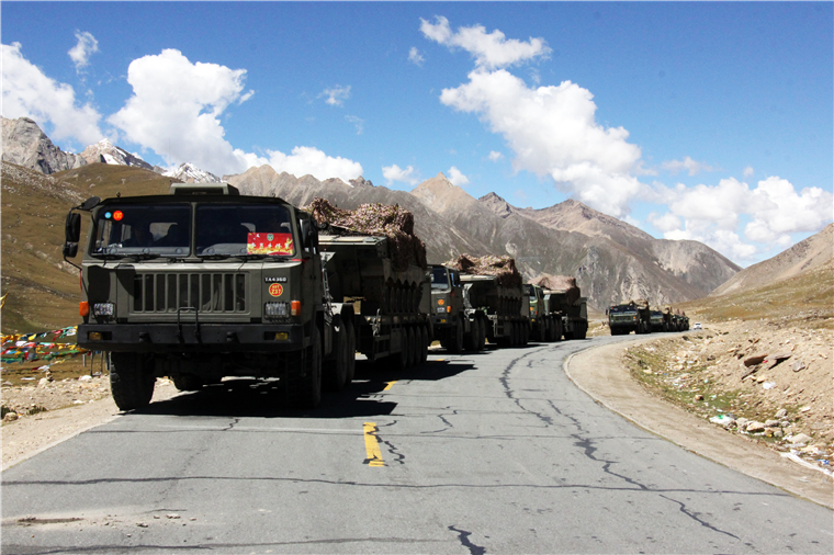 鄭州聯(lián)勤保障中心某汽車團(tuán)重裝備運(yùn)輸營(yíng)赴藏參加全軍聯(lián)合訓(xùn)練研討活動(dòng),重裝備運(yùn)輸車在雪域高原馳騁。馮佳 攝 今天的人民軍隊(duì) 正大步走在建設(shè)世界一流軍隊(duì)的道路上 有信心有能力打敗一切來(lái)犯之?dāng)?/p>