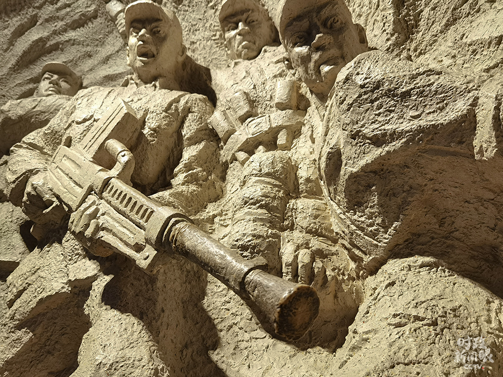 △象征中華民族團結抗戰(zhàn)的大型浮雕《銅墻鐵壁》(總臺央視記者李輝拍攝)