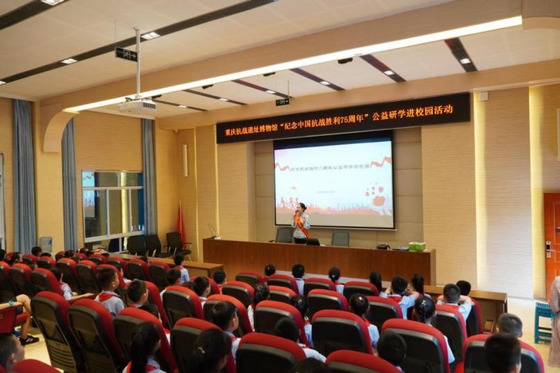 重慶抗戰(zhàn)遺址博物館開啟“紀(jì)念中國抗戰(zhàn)勝利75周年”公益研學(xué)進(jìn)校園巡講活動。緊緊圍繞立德樹人這一根本任務(wù),為重慶主城3個區(qū)12所學(xué)校的4000余名中小學(xué)生提供文化公益服務(wù)。