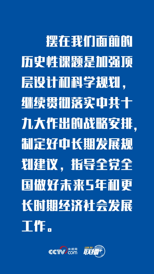 企業(yè)家座談會、黨外人士座談會、扎實(shí)推進(jìn)長三角一體化發(fā)展座談會、經(jīng)濟(jì)社會領(lǐng)域?qū)<易剷⒖茖W(xué)家座談會、基層代表座談會、教育文化衛(wèi)生體育領(lǐng)域?qū)<掖碜剷?月以來,為謀篇“十四五”,習(xí)近平總書記已主持召開了多場問計(jì)會。 10月30日,《新聞聯(lián)播》對中共中央8月25日在中南海召開黨外人士座談會一事作了詳細(xì)報(bào)道。這是一場別開生面的座談會,主題是向黨外人士征求對中共中央關(guān)于制定國民經(jīng)濟(jì)和社會發(fā)展第十四個(gè)五年規(guī)劃和2035年遠(yuǎn)景目標(biāo)的建議的意見。 “大家在發(fā)言中暢所欲言,進(jìn)一步提出了關(guān)于‘十四五’規(guī)劃和2035年遠(yuǎn)景目標(biāo)的意見和建議,聽了很受啟發(fā),我們將認(rèn)真研究和吸納?!痹谡J(rèn)真聽取大家發(fā)言后,習(xí)近平總書記發(fā)表了重要講話。央視網(wǎng)《聯(lián)播+》特進(jìn)行梳理,與您一起學(xué)習(xí)。 一個(gè)重大任務(wù) 習(xí)近平總書記首先介紹了中共中央關(guān)于制定國民經(jīng)濟(jì)和社會發(fā)展第十四個(gè)五年規(guī)劃和2035年遠(yuǎn)景目標(biāo)的建議的考慮和文件起草有關(guān)情況。他是這樣說的: 中共中央經(jīng)過認(rèn)真研究,決定中共十九屆五中全會的主題為研究關(guān)于制定國民經(jīng)濟(jì)和社會發(fā)展第十四個(gè)五年規(guī)劃和2035年遠(yuǎn)景目標(biāo)的建議。 這是貫徹落實(shí)中共十九大戰(zhàn)略安排的重大任務(wù),是統(tǒng)籌中華民族偉大復(fù)興戰(zhàn)略全局和世界百年未有之大變局的現(xiàn)實(shí)需要,是發(fā)揮中國特色社會主義制度優(yōu)勢的重要途徑。 制定好“十四五”規(guī)劃建議,將為編制規(guī)劃綱要提供依據(jù),向社會傳遞未來5年我國發(fā)展的主要目標(biāo)、優(yōu)先領(lǐng)域、重點(diǎn)任務(wù),有利于引導(dǎo)全社會匯聚共識、凝聚力量,推動(dòng)我國經(jīng)濟(jì)社會發(fā)展不斷取得新的更大成就。 五大“關(guān)系” 習(xí)近平總書記強(qiáng)調(diào),制定好“十四五”規(guī)劃建議,必須處理好幾大關(guān)系。他進(jìn)一步解釋: 一是處理好繼承和創(chuàng)新的關(guān)系,做好“兩個(gè)一百年”奮斗目標(biāo)有機(jī)銜接。 二是處理好政府和市場的關(guān)系,更好發(fā)揮我國制度優(yōu)勢。 三是處理好開放和自主的關(guān)系,更好統(tǒng)籌國內(nèi)國際兩個(gè)大局。 四是處理好發(fā)展和安全的關(guān)系。 五是處理好戰(zhàn)略和戰(zhàn)術(shù)的關(guān)系,制定出一個(gè)高瞻遠(yuǎn)矚、務(wù)實(shí)管用的規(guī)劃建議。 三個(gè)“要求” 習(xí)近平總書記希望大家繼續(xù)思考研究,繼續(xù)提供真知灼見。他說: 要深刻認(rèn)識新發(fā)展階段,深刻認(rèn)識新發(fā)展階段的新特征新要求,積極主動(dòng)迎接挑戰(zhàn),發(fā)揚(yáng)斗爭精神,努力化危為機(jī),解決一系列影響高質(zhì)量發(fā)展的結(jié)構(gòu)性、周期性、體制性問題,培育強(qiáng)勁持續(xù)的發(fā)展新動(dòng)能,不斷實(shí)現(xiàn)人民對美好生活的向往。 要全面貫徹新發(fā)展理念,堅(jiān)持統(tǒng)籌推進(jìn)“五位一體”總體布局、協(xié)調(diào)推進(jìn)“四個(gè)全面”戰(zhàn)略布局,加強(qiáng)頂層設(shè)計(jì)和戰(zhàn)略布局,增強(qiáng)發(fā)展的整體性、協(xié)同性。 要著力構(gòu)建新發(fā)展格局,根據(jù)我國發(fā)展環(huán)境、發(fā)展階段、發(fā)展條件的深刻變化,堅(jiān)持?jǐn)U大內(nèi)需這個(gè)戰(zhàn)略基點(diǎn),更好吸引全球資源要素,形成參與國際經(jīng)濟(jì)合作和競爭新優(yōu)勢。 一個(gè)“希望” “中共十九屆五中全會審議通過‘十四五’規(guī)劃建議后,國務(wù)院還要根據(jù)《建議》制定《國民經(jīng)濟(jì)和社會發(fā)展第十四個(gè)五年規(guī)劃綱要草案》?!弊剷?,習(xí)近平總書記還提出了一個(gè)“希望”: 希望各民主黨派、工商聯(lián)和無黨派人士堅(jiān)持問題導(dǎo)向,繼續(xù)深入開展調(diào)查研究,摸清真實(shí)情況,科學(xué)研究論證,反映社會訴求,為制定好“十四五”規(guī)劃貢獻(xiàn)出寶貴智慧。 |