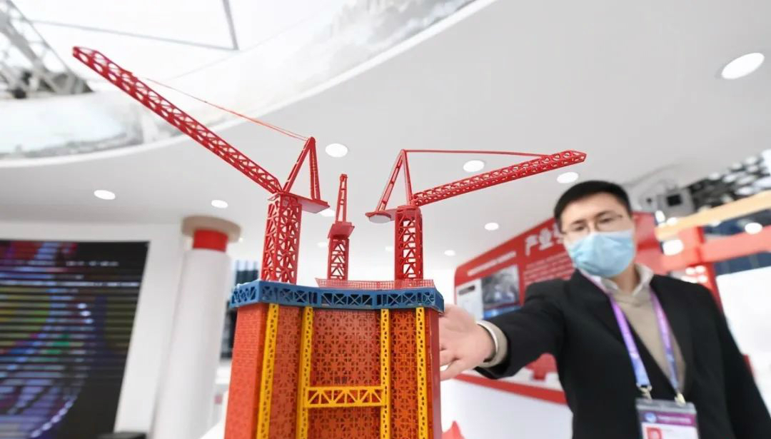 △第三屆進博會上展出的“空中造樓機”不僅較傳統(tǒng)施工裝備更加安全智能,還可縮短20%的工期。
