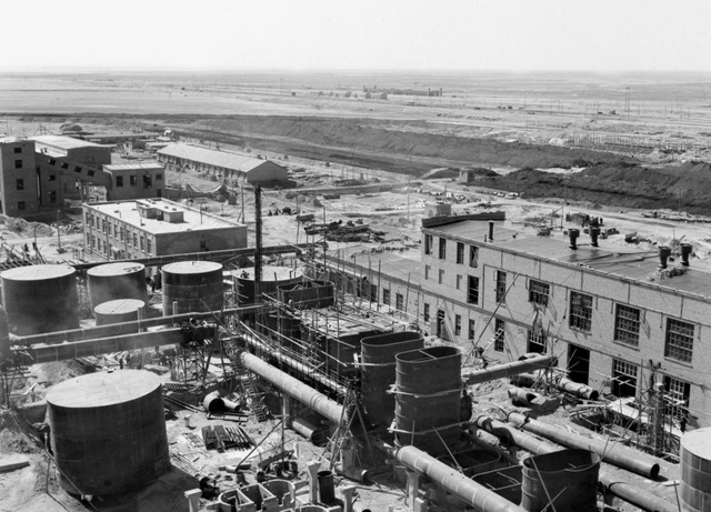 包鋼在全國(guó)各地大力支援下,加快建設(shè)速度。規(guī)模巨大的包鋼焦化廠第一座煉焦?fàn)t就要提前投入生產(chǎn)。圖為已竣工的化學(xué)回收系統(tǒng)一角。新華社記者陸軻攝(1959年3月31日發(fā)) 中央、自治區(qū)、包頭市先后派出文藝團(tuán)體到包鋼建設(shè)工地慰問(wèn)演出,鼓舞士氣。一時(shí)間,包鋼建設(shè)工地人歡馬叫,機(jī)器轟鳴,塔吊伸出巨臂,托起高爐節(jié)節(jié)上升。 英雄的包鋼建設(shè)者們,沒(méi)有辜負(fù)黨中央和全國(guó)人民的期望,團(tuán)結(jié)一致戰(zhàn)勝了許多困難,終于使一號(hào)高爐提前一年建成投產(chǎn)。
