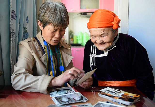 這是一張拼版照片,上圖為:在內(nèi)蒙古四子王旗腦木更蘇木烏蘭希熱嘎查,都貴瑪(中)和女兒查干朝魯(左)在她們居住的蒙古包前合影(都貴瑪提供);下圖為:2018年,在內(nèi)蒙古四子王旗烏蘭花鎮(zhèn),76歲的都貴瑪(右)和女兒查干朝魯(左)在自家樓下合影。新華社記者鄒予攝 草原上的額吉們都悉心地照料這些“國(guó)家的孩子”,苦心教育他們長(zhǎng)大成人。原本相隔千里,沒(méi)有血緣關(guān)系,如今卻骨肉相連、生死相依。三千漢族孤兒與蒙古族母親之間,演繹了一個(gè)超越地域、血緣、民族的人間佳話。