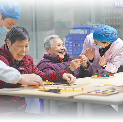 近年來,江西省宜春市積極探索推進(jìn)新型養(yǎng)老模式,基本建成覆蓋城鄉(xiāng)、功能合理、服務(wù)多樣的醫(yī)養(yǎng)結(jié)合服務(wù)體系。圖為醫(yī)護(hù)人員在協(xié)助老人進(jìn)行康復(fù)訓(xùn)練?! ≈?亮攝(影像中國(guó))