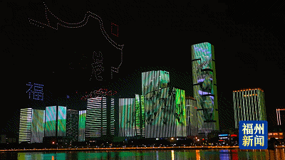 祥龍騰空圖案 超燃的無人機表演 既是為即將在福州舉辦的 數(shù)字峰會、數(shù)博會打call 也是通過難得一見的演出 點贊數(shù)字福州建設 點贊福州在文化傳承保護 及宜居宜業(yè)城市打造等方面 取得的巨大成就 兩岸華燈伴“千機” 絢麗閩江盡顯榕城夜色之美 1500架無人機 帶來精彩表演的同時 在閩江兩岸 福州地標景觀——樓體燈光秀 同步上演 共同描繪 “有福之州 幸福之城”美麗畫卷 據了解,海峽金融商務區(qū)樓體燈光秀,涉及閩江南北岸22棟樓體、一座跨江大橋(鰲峰大橋),安裝了80多萬顆像素燈,形成270度視角,并采用裸眼3D技術,在一定角度上呈現(xiàn)立體畫面效果。 今晚的燈光秀 以《有福之州》為題 分為“生態(tài)城”“幸福城” “現(xiàn)代城”“百年慶”四個篇章 根據主題搭配相應的主色調 并配合不同風格的背景音樂 展示福州建設的巨大成就 以此慶祝中國共產黨成立100周年 Part 1 “生態(tài)城”篇章