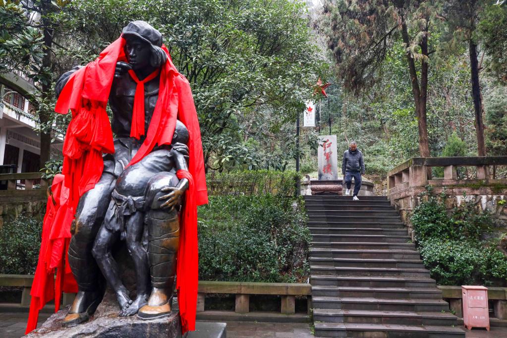 這是遵義會議召開的房間(2月24日攝)。新華社記者劉續(xù)攝 【紅色基因代代傳】 如今,遵義成為全國紅色旅游關注度最高的目的地之一。據(jù)統(tǒng)計,2015年以來,遵義已接待紅色旅游游客近2.4億人次。人們在旅途中聆聽黨史,在行走中感受紅色文化,緬懷先輩英雄事跡,重溫激情燃燒歲月。 遵義市組建了“紅色義務宣講團”、“小小紅色義務宣講員”隊伍,舉辦“行進中的遵義會議紀念館”全國巡展等活動,不斷講好遵義故事,將“紅色種子”播撒到更多地方。 婁山關腳下,婁山關紅軍小學將“獨腿將軍”鐘赤兵的傳奇故事寫進學校的紅色課本,搬到德育陳列館?!霸趭渖疥P紅軍戰(zhàn)斗遺址陳列館,我最喜歡講一條腿走完長征路的鐘赤兵爺爺?shù)墓适?。他是我心目中的英雄,我要學習他堅毅的精神。”婁山關紅軍小學學生、小宣講員馬興蕾說。 紅色故事傳承不變初心 【紅色歷史·“紅軍菩薩”】 “太陽出來暖洋洋,紅軍來了不納糧;又分錢來又分米,‘干人’有了救命王?!奔t軍在遵義每到一地,都要打開地主、富戶糧倉,把糧食分給窮苦百姓。 在遵義,“紅軍菩薩”的故事流傳至今。為百姓治病解難的紅軍衛(wèi)生員龍思泉,在寒風肆虐的冬日,焐熱了窮苦人們冰冷的額頭,卻被敵人殘忍殺害,鄉(xiāng)親們含著眼淚將他安葬。歲月滄桑,這座位于紅軍山烈士陵園的紅軍墳,如今每天仍有很多人前來祭奠。