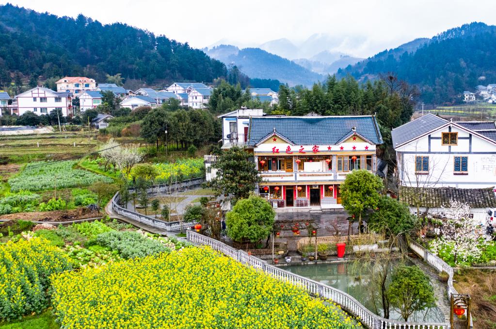 遵義市楓香鎮(zhèn)花茂村村民王治強經(jīng)營的“紅色之家”農(nóng)家樂(2020年2月28日攝,無人機照片)。新華社記者陶亮攝 【千年貧困今朝解】 由于山高谷深、交通不便,產(chǎn)業(yè)發(fā)展受限,革命老區(qū)遵義長期受到貧困的羈絆。黨的十八大以來,脫貧攻堅的號角在黔北大地吹響。2020年3月,遵義在貴州率先實現(xiàn)整體脫貧,累計減少農(nóng)村貧困人口151.38萬人。據(jù)統(tǒng)計,近5年來,遵義地區(qū)生產(chǎn)總值年均增長9.8%,城鄉(xiāng)居民人均可支配收入年均分別增長8.3%和9.7%。 王治強說,這幾年,來花茂村的游客越來越多,今年春節(jié)以來,光是他的“紅色之家”農(nóng)家樂,一個下午就接待30桌客人,太忙的時候,他會雇村里人來幫忙?!斑^上現(xiàn)在的好生活,大家天天都樂呵呵?!?/p> “‘十四五’期間,我們要做大做強遵義都市圈,形成核心增長極,奮力建設紅色傳承引領地、綠色發(fā)展示范區(qū)、美麗幸福新遵義?!弊窳x市委書記魏樹旺說。