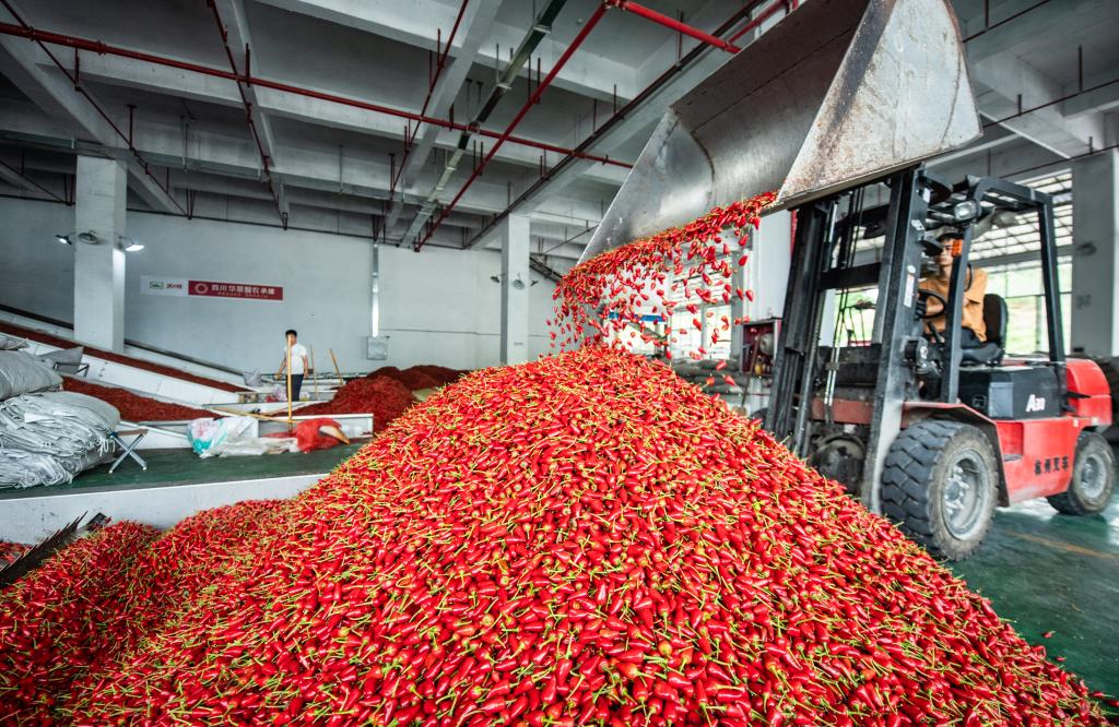3月17日,茶農(nóng)們在遵義市余慶縣花山苗族鄉(xiāng)回龍村茶青交易市場交易茶青。新華社記者劉續(xù)攝 走進位于新蒲新區(qū)“中國辣椒城”的遵義德莊食品產(chǎn)業(yè)有限責任公司加工車間,機械手裝箱、碼垛機器人引人注目,自動流水線上,各種辣椒制品一箱箱投放進庫房。 “遵義是重慶德莊公司對外發(fā)展的第一個精深加工基地?!弊窳x德莊公司總經(jīng)理岳欽松說,2020年8月公司正式投產(chǎn),今年將實現(xiàn)產(chǎn)值2億元,“我們有信心在遵義構建起農(nóng)、產(chǎn)、銷相互聯(lián)通的完整產(chǎn)業(yè)鏈,實現(xiàn)三產(chǎn)融合發(fā)展”。