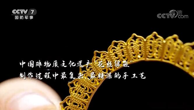 熔煉、壓制、執(zhí)模、鑄造、電鍍、琺瑯、組裝,七個(gè)步驟,十多道工序,手工制作占比60%,中國非物質(zhì)文化遺產(chǎn)“花絲鑲嵌”,制作過程中最復(fù)雜、最精湛的手工藝。