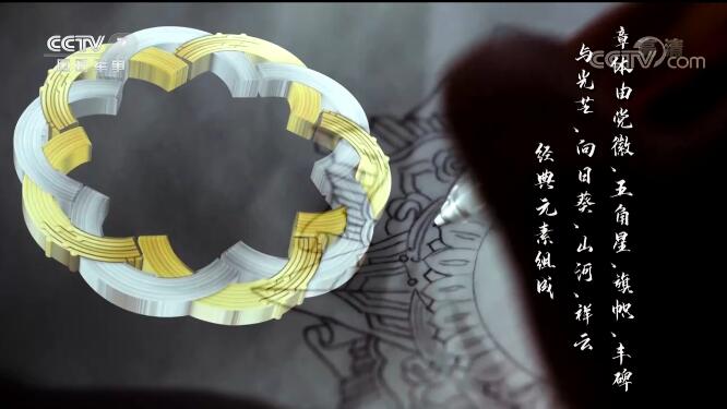 黨和國家勛獎(jiǎng)?wù)略O(shè)計(jì)制作團(tuán)隊(duì)成員 申文廣:點(diǎn)睛的部分就是“花絲鑲嵌”的工藝,這種工藝其實(shí)在中國從春秋戰(zhàn)國時(shí)期就已經(jīng)有了,代表工藝的最高的一個(gè)水準(zhǔn)。