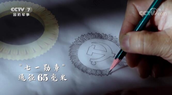 黨和國家勛獎(jiǎng)?wù)略O(shè)計(jì)制作團(tuán)隊(duì)成員 申文廣:設(shè)計(jì)過程當(dāng)中,等于再一次把黨史學(xué)習(xí)一遍。 “七一勛章”通徑65毫米,章體由黨徽、五角星、旗幟、豐碑與光芒、向日葵、山河、祥云經(jīng)典元素組成。