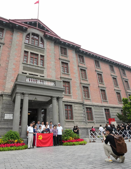 6月29日,參觀者在北大紅樓外合影留念。修繕后的北大紅樓舊址6月29日起重新向公眾開放,“光輝偉業(yè) 紅色序章——北大紅樓與中國(guó)共產(chǎn)黨早期北京革命活動(dòng)”主題展覽也于同日亮相,豐富的圖片、文物帶領(lǐng)觀眾追尋紅色起點(diǎn),傳承紅色血脈,汲取前行力量。新華社記者 鞠煥宗 攝 在北京市東城區(qū)五四大街29號(hào),一座以紅磚砌筑、紅瓦鋪?lái)數(shù)臉求w建筑靜述著紅色的歷史煙云,這座建筑是始建于1916年、落成于1918年的北大紅樓。這里曾是北京大學(xué)校部、一院(文科教學(xué)樓)和圖書館的所在地,李大釗、毛澤東等人開展早期革命活動(dòng)的重要場(chǎng)所。新文化運(yùn)動(dòng)、五四運(yùn)動(dòng)在此相繼展開,北京的共產(chǎn)黨早期組織在此孕育誕生。 29日上午,來(lái)自北京市第六十五中學(xué)、清華大學(xué)等多家單位的參觀者提前預(yù)約、分批次進(jìn)入北大紅樓進(jìn)行參觀學(xué)習(xí)。