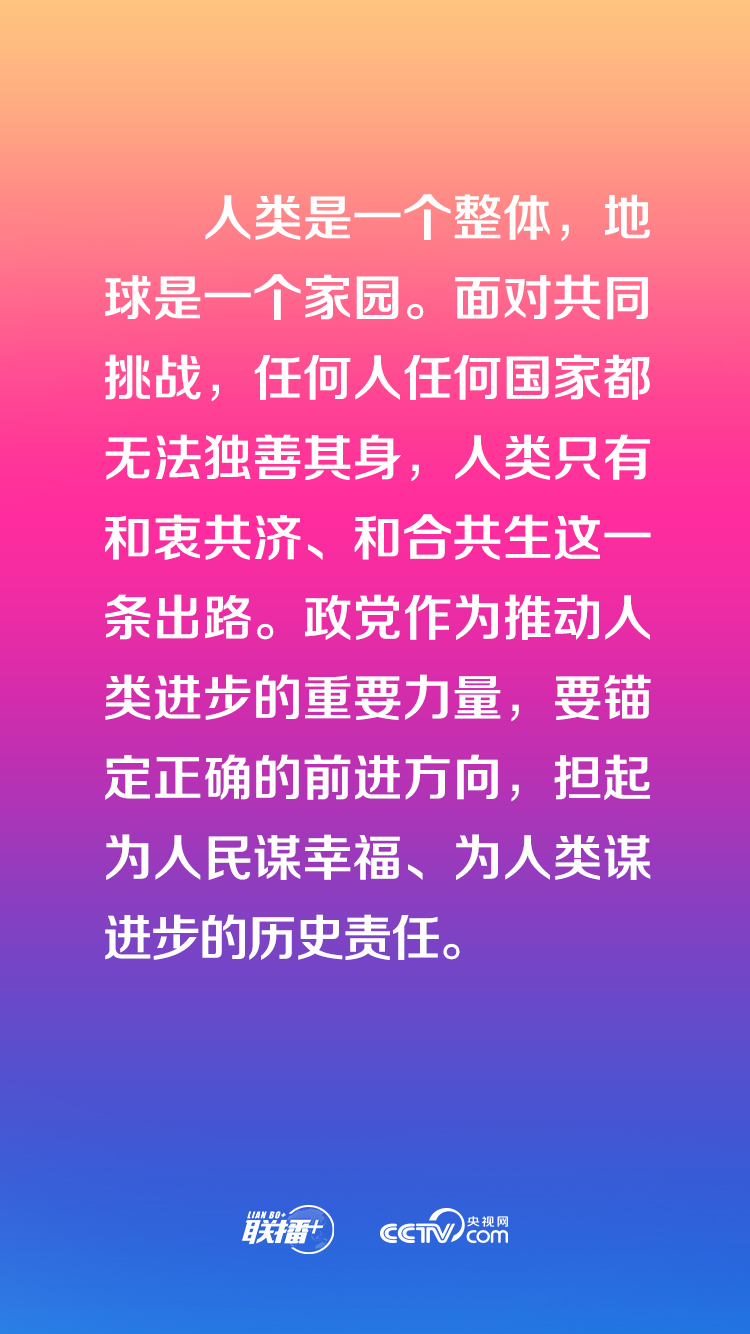 中國(guó)共產(chǎn)黨愿同各國(guó)政黨加強(qiáng)溝通,共同引導(dǎo)經(jīng)濟(jì)全球化朝著更加開(kāi)放、包容、普惠、平衡、共贏的方向發(fā)展。