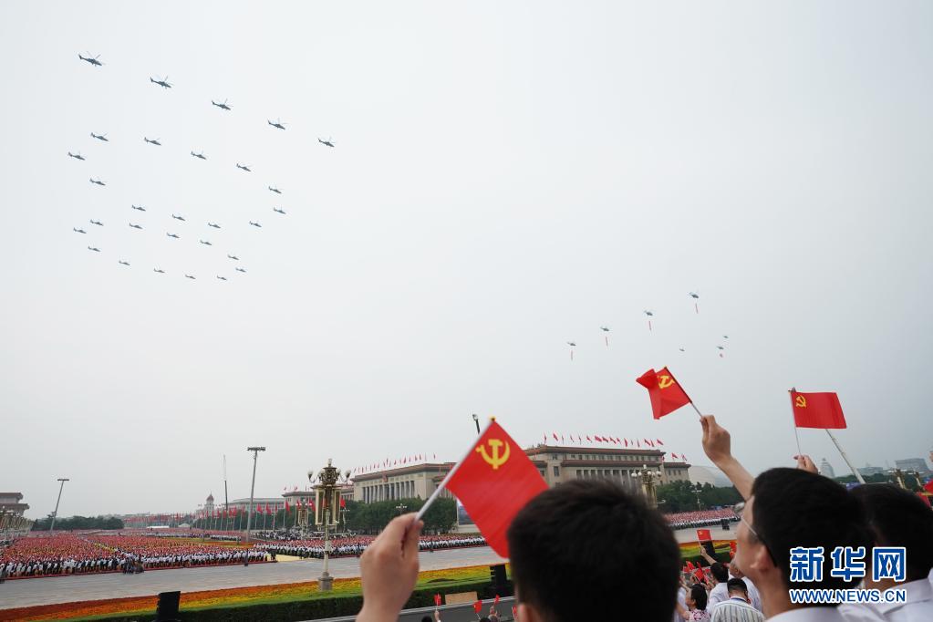 7月1日上午,慶祝中國共產(chǎn)黨成立100周年大會(huì)將在北京天安門廣場隆重舉行。這是飛行慶祝表演。新華社記者 鞠煥宗 攝