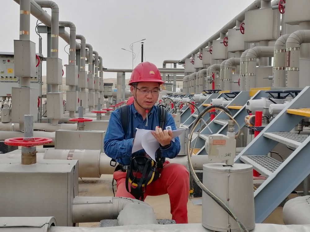 7月31日,馮光在塔里木油田塔中1號集氣站核對遠(yuǎn)傳工藝參數(shù)。新華社發(fā) 新井投產(chǎn)準(zhǔn)備、技術(shù)改造施工、設(shè)備檢修維護(hù)……一項項工作在馮光的帶領(lǐng)下有條不紊地開展。采油裝置365天不停轉(zhuǎn),馮光和他的團(tuán)隊24小時無間斷待命。 清晨,望著點點星光起床;凌晨,伴著滿天星斗入眠。馮光常和同事半開玩笑半認(rèn)真地說,他們是“星光使者”。 油區(qū)不少集輸管線建設(shè)在沒有硬化的沙漠里。今年5月的一天早上,馮光像往常一樣檢查設(shè)備后準(zhǔn)備開工,突然發(fā)現(xiàn),一條遠(yuǎn)離硬化路面、長達(dá)六七百米的油氣管線有失效風(fēng)險。